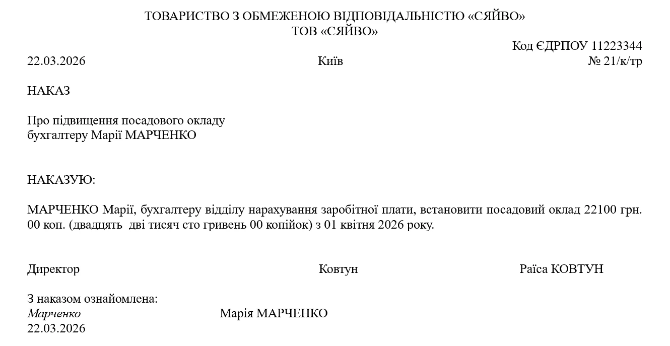 - Підвищення посадового окладу: внесення змін до штатного розпису