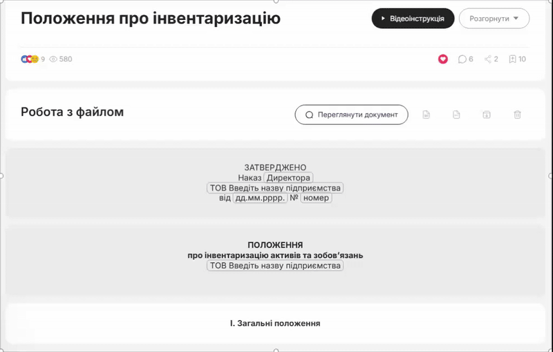 Налаштуйте лише необхідні розділи, внесіть реквізити підприємства та миттєво завантажуйте готове Положення у Word чи PDF