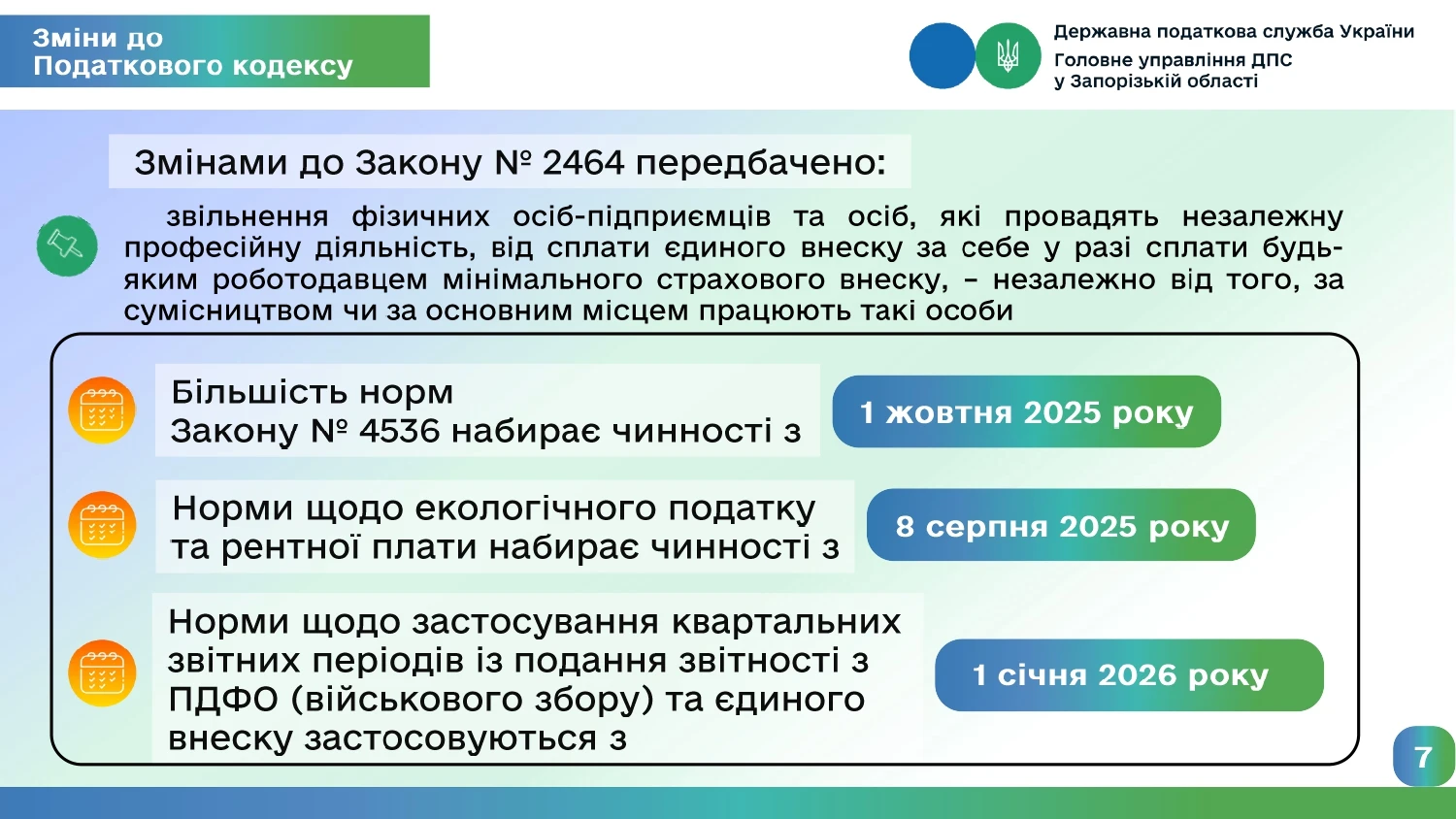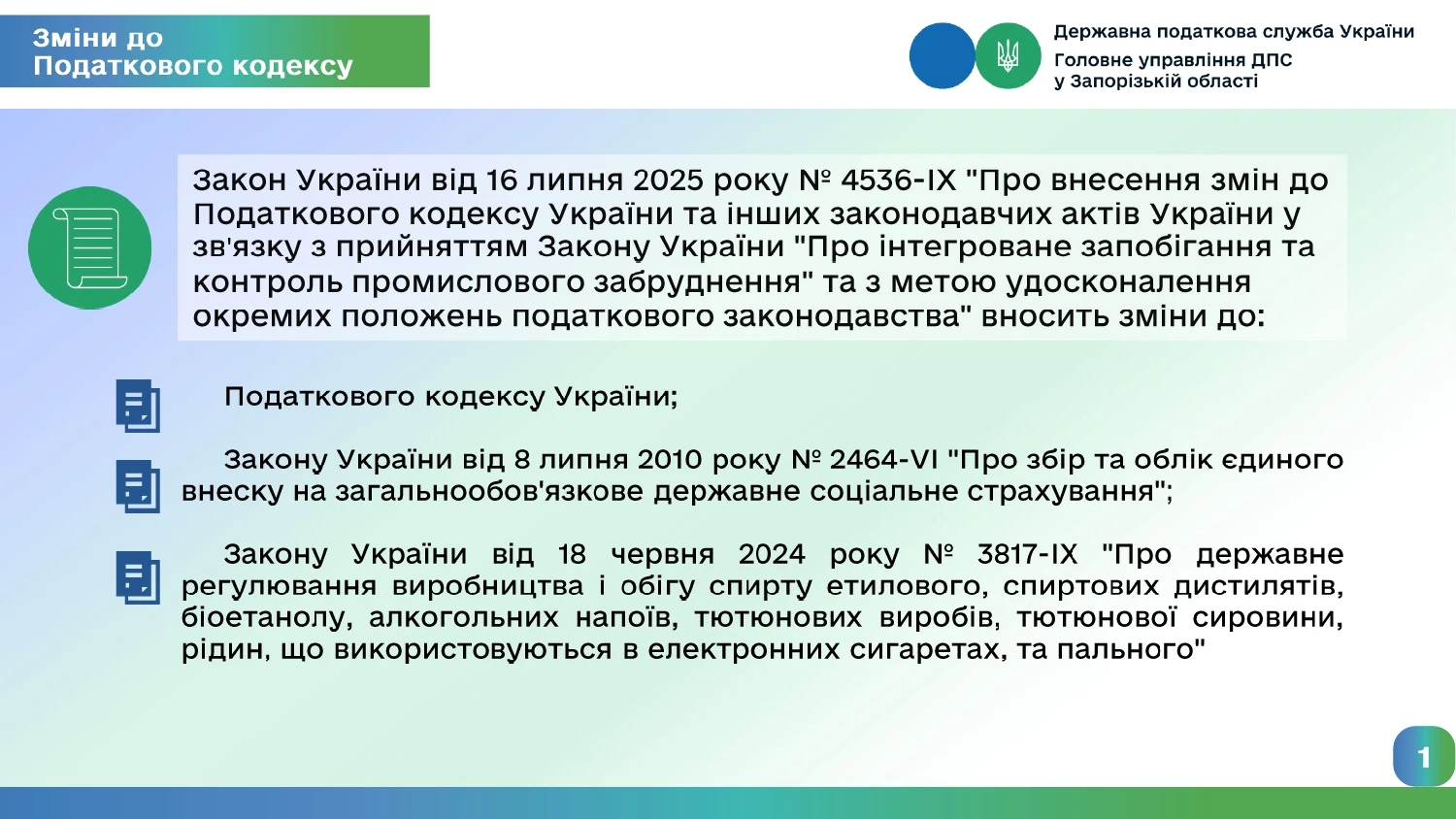 З 1 жовтня 2025 року набули чинності зміни до Податкового Кодексу України, що запроваджені Законом України від 16.07.2025 №4536-ІХ «Про внесення змін до Податкового кодексу України та інших законодавчих актів України у зв’язку з прийняттям Закону України «Про інтегроване запобігання та контроль промислового забруднення» та з метою удосконалення окремих положень податкового законодавства».