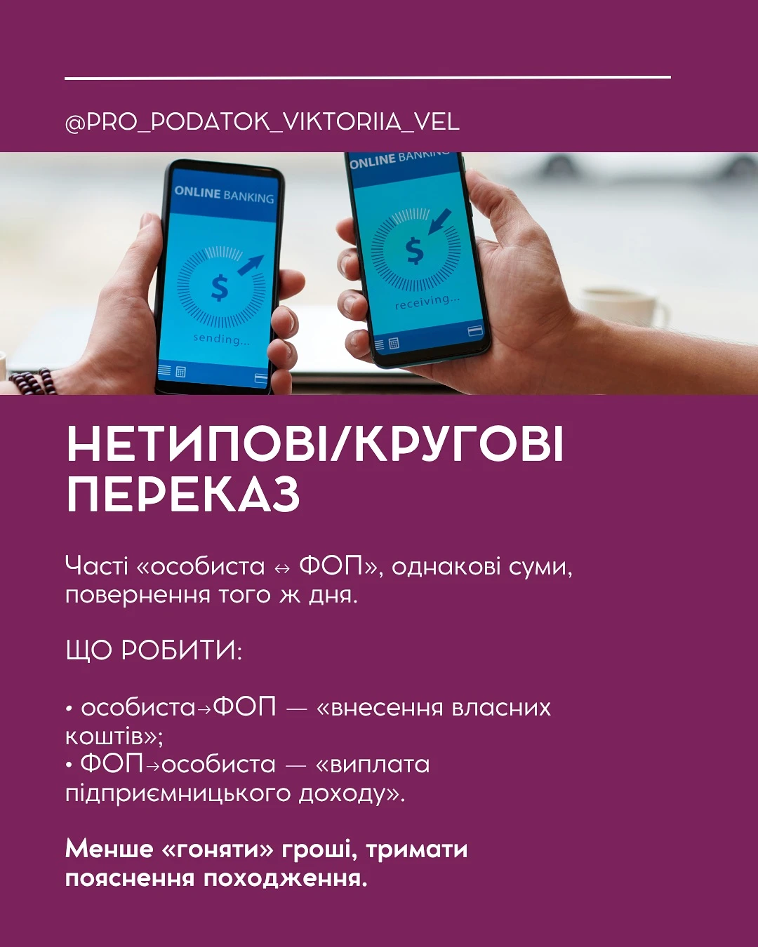 - багато перекидів між особистою карткою та рахунком ФОП;