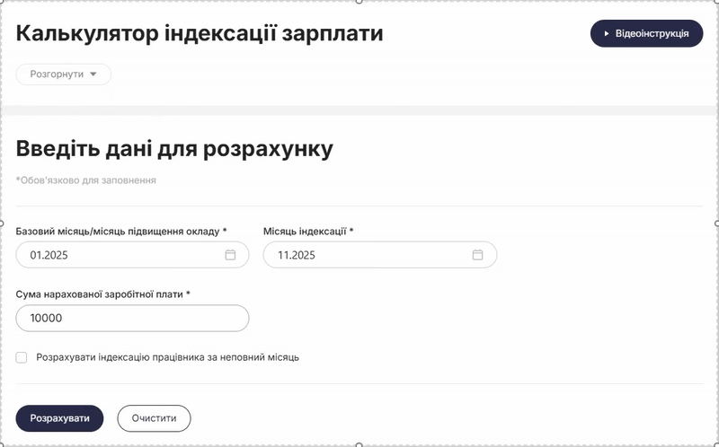 Калькулятор індексації зарплати – це простий та зручний сервіс, який створений щоб робити розрахунки за Вас! Не витрачайте час на складні розрахунки, наш калькулятор швидко порахує індексацію за вас, адже він для цього і створений. Вам потрібно лише заповнити розмір зарплати працівника, базовий місяць та період нарахування індексації