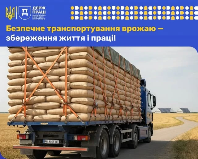 В Держпраці нагадують, що після збору врожаю важливо не лише швидко, а й безпечно доставити його до складів чи елеваторів.