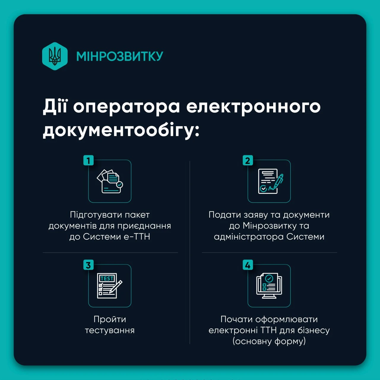 - 3 листопада 2025 року розпочинається прийом заявок від компаній-операторів електронного документообігу (ЕДО) на тестування Системи електронної товарно-транспортної накладної (е-ТТН).