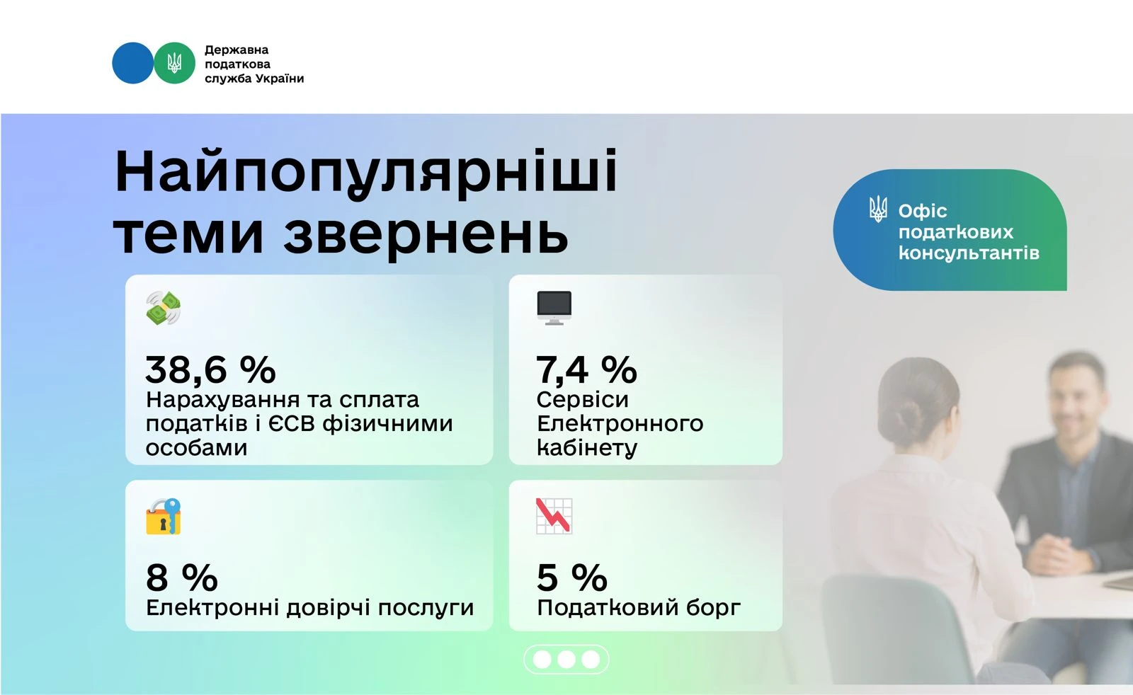 - нарахування та сплата податків і ЄСВ фізичними особами – 38,6 % усіх консультацій;