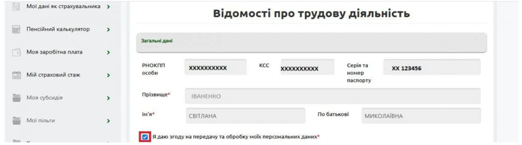 Крок 3. Заповніть загальну інформацію про особу (якщо вона не підтягнулась автоматично) та надайте згоду на передачу та обробку персональних даних.