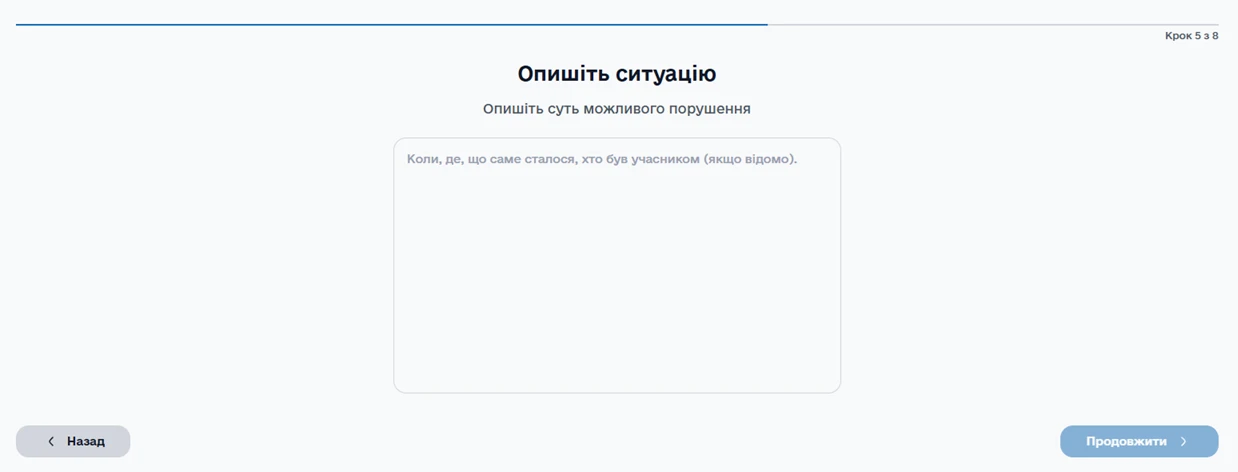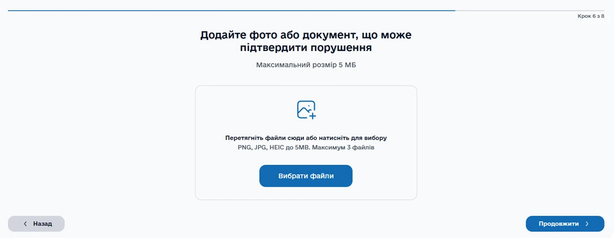 - додатково можна прикріпити фото або інші докази (до 5 МБ).