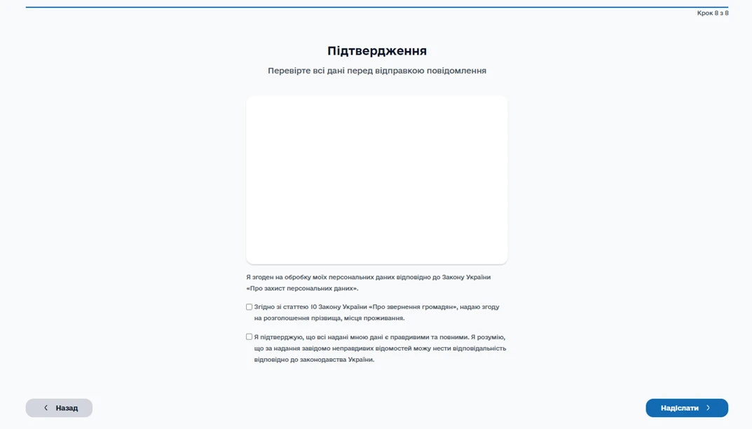 Вся персональна інформація заявників захищена. Вона не передається третім особам і використовується виключно для розгляду повідомлення.