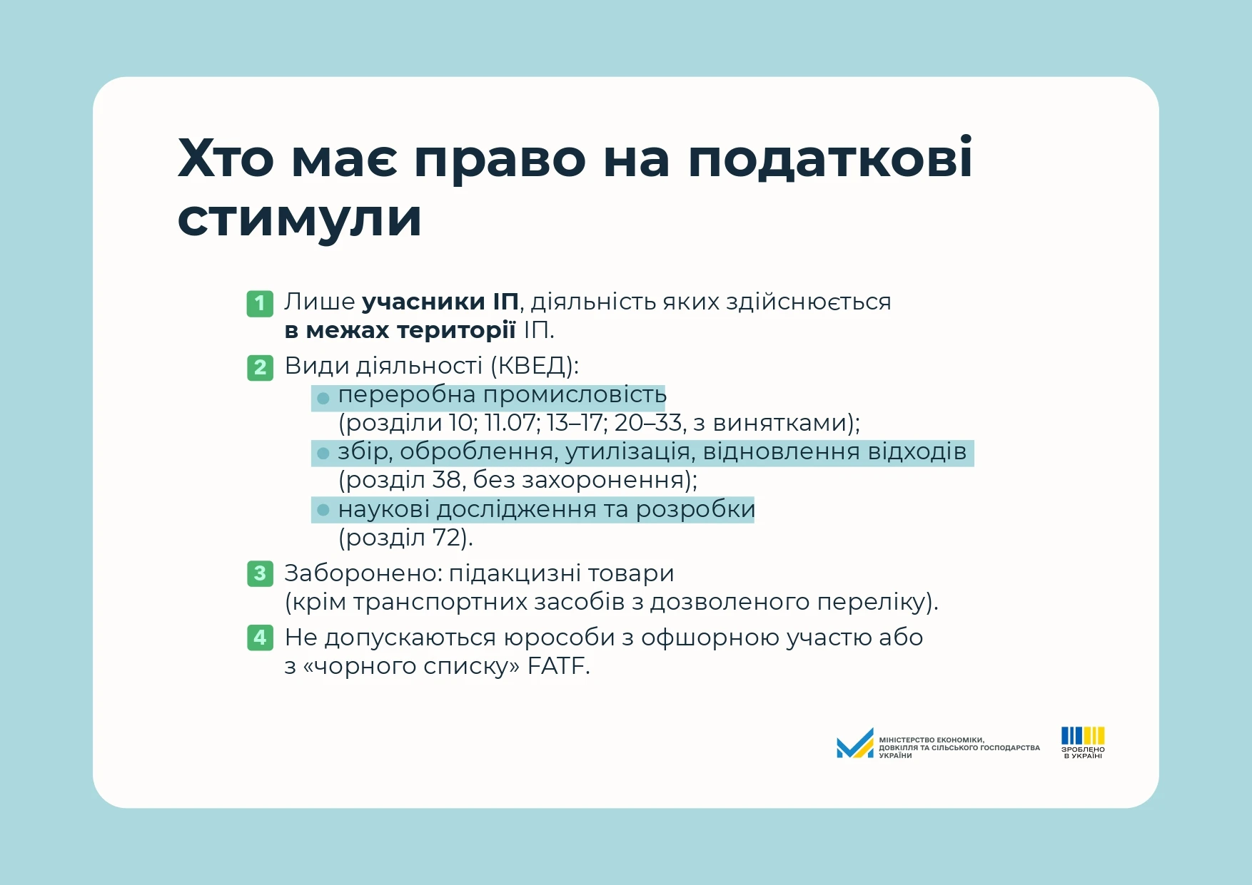 - Лише учасники ІП, діяльність яких здійснюється в межах території ІП.