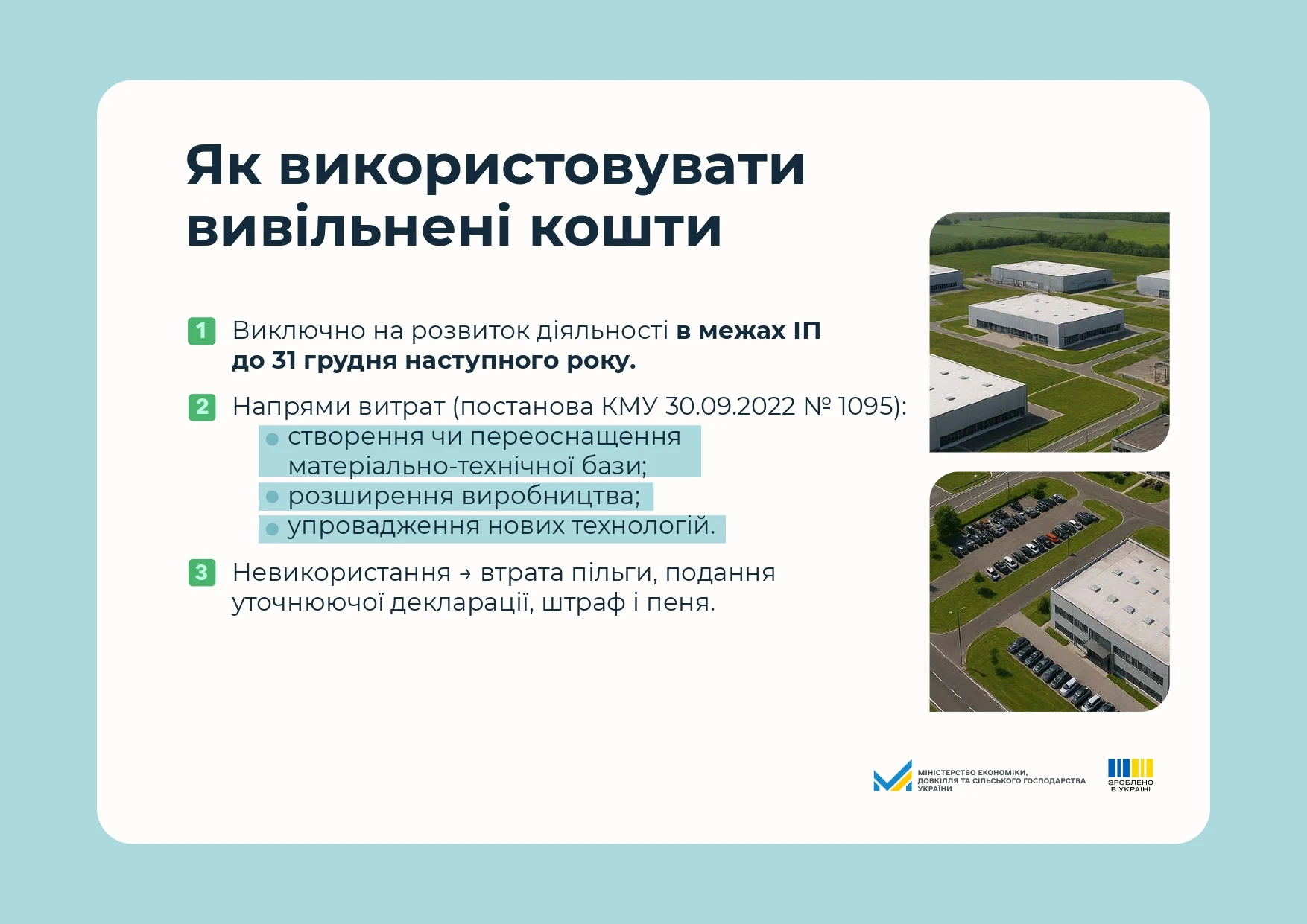 - Виключно на розвиток діяльності в межах ІП до 31 грудня наступного року.