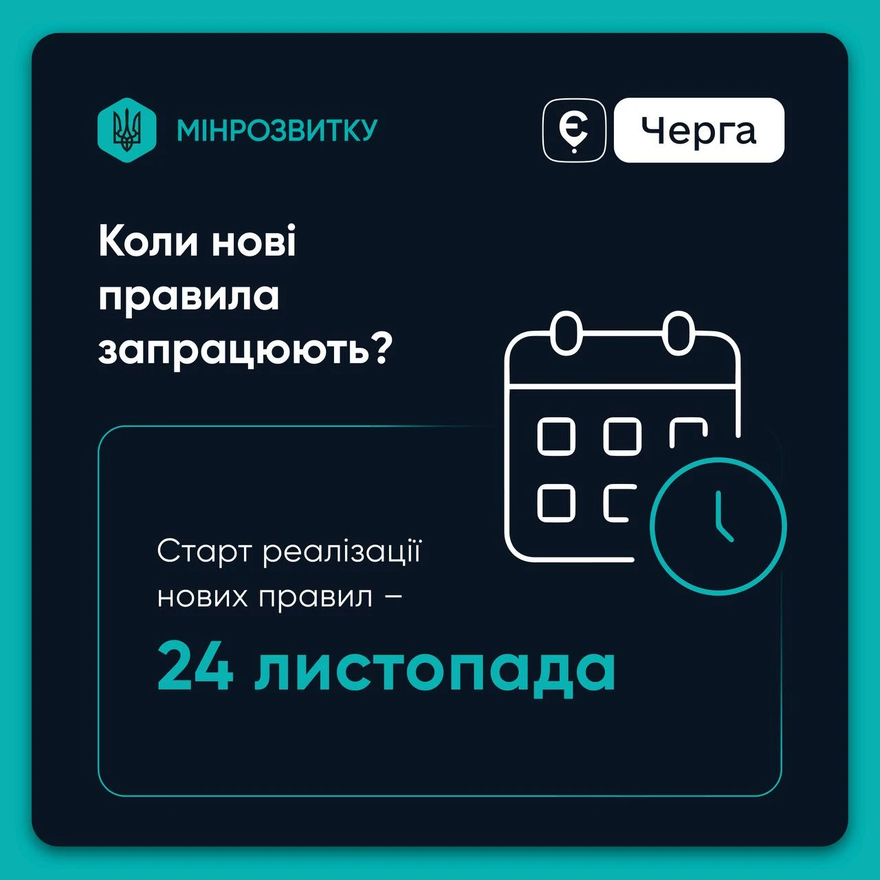 24 листопада Міністерство розвитку громад та територій України розпочинає поетапне впровадження оновлених правил використання системи «єЧерга» для вантажних транспортних засобів. Нові правила затверджені Наказом від 20.06.2025 №1028 «Про затвердження Правил черговості прибуття вантажних автомобілів до міжнародних та міждержавних пунктів пропуску через державний кордон України з використанням електронної системи «Електронна черга перетину кордону»».