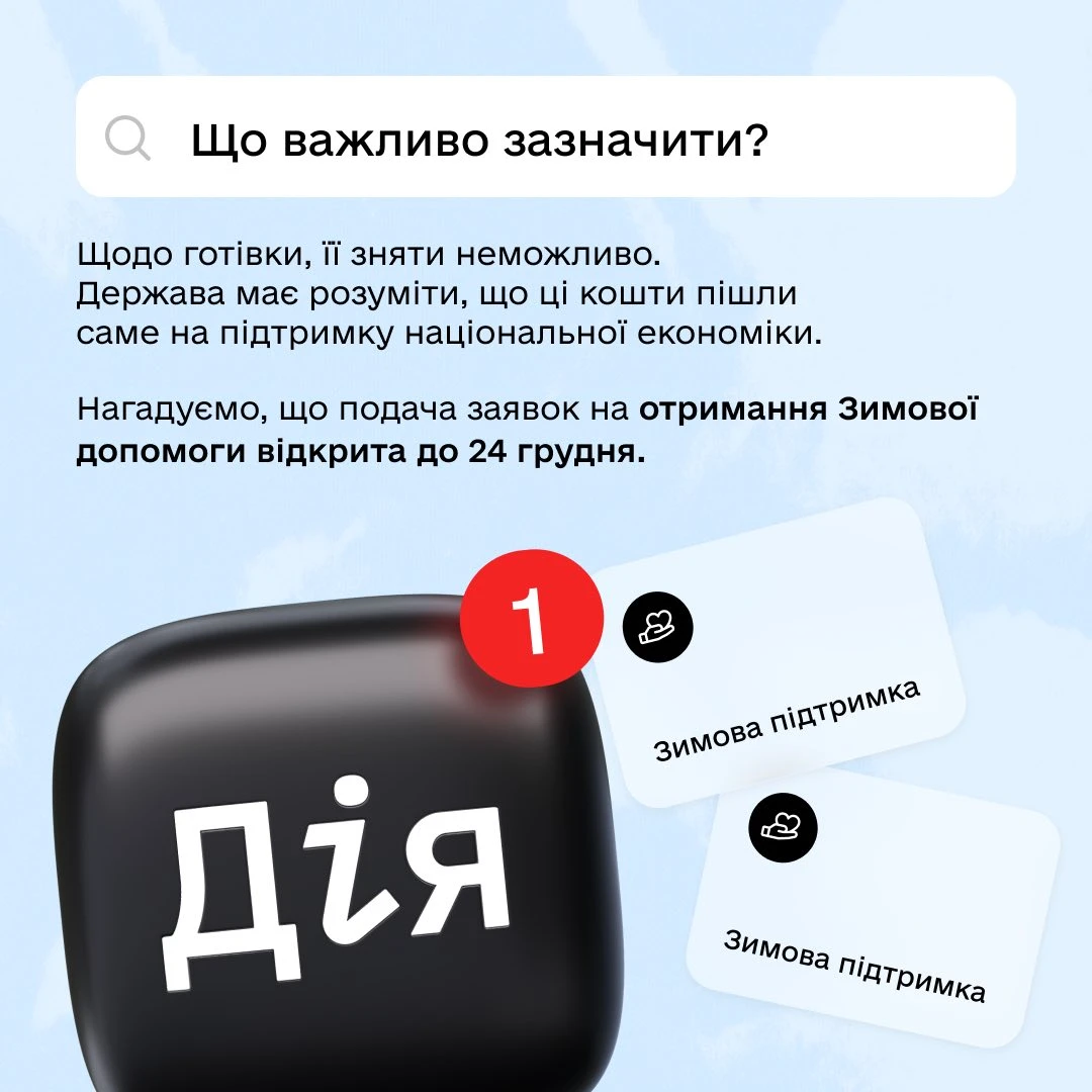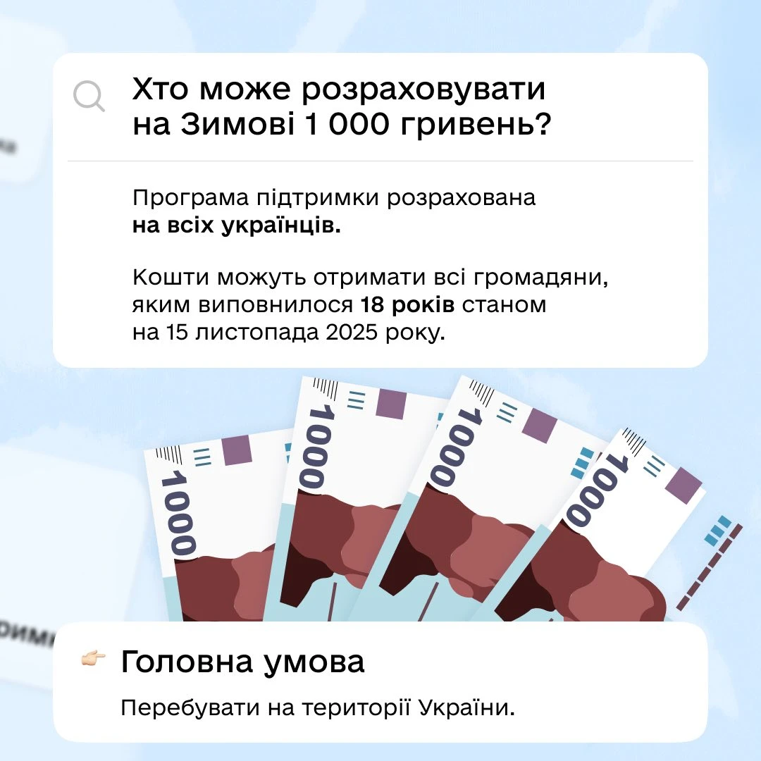 1000 грн «Зимової підтримки» – 2026: заяви прийматимуть з 15 листопада по 24 грудня