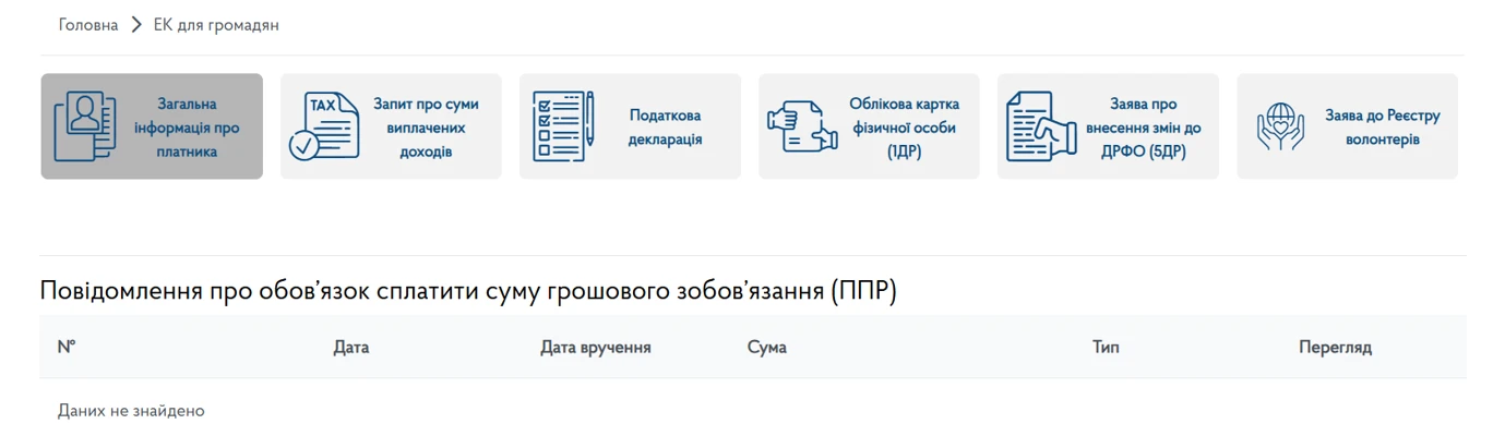 Будь-який із цих способів дає повний доступ до особистого кабінету платника податків.
