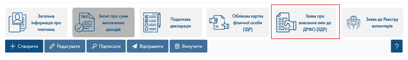 Заява про внесення змін до Державного реєстру фізичних осіб-платників податків. Форма 5ДР