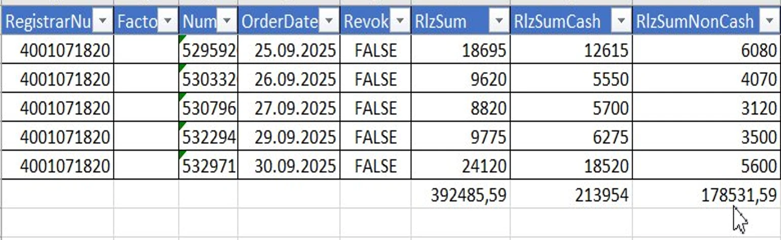 В Електронному кабінеті платника податків у розділі «Дані РРО» можна за фіскальним номером касового апарату сформувати звіт за будь-який період. У звіті будуть загальна сума реалізації, окремо – готівка, окремо – безготівкові оплати через термінал.