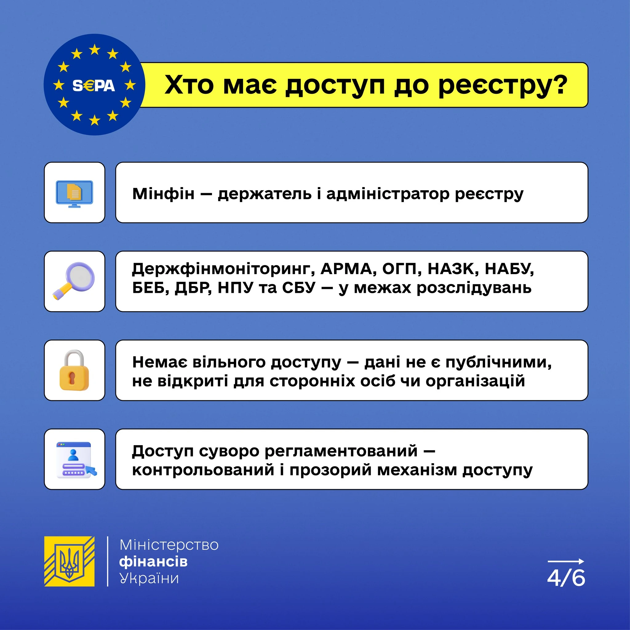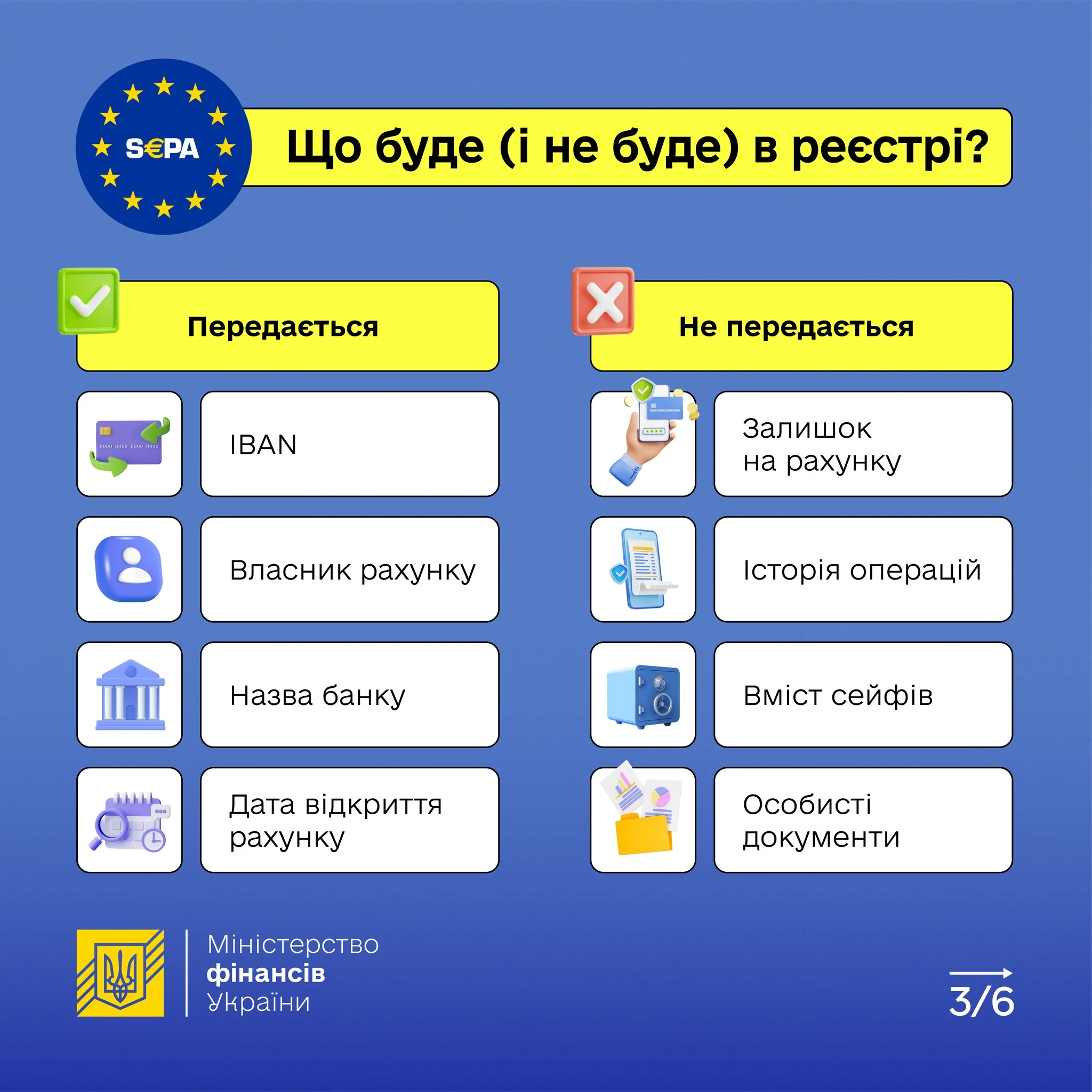 - створюється реєстр рахунків і сейфів, але у ньому збиратимуться тільки IBAN, ваше ім’я та банк, без деталей про суми чи рух коштів;