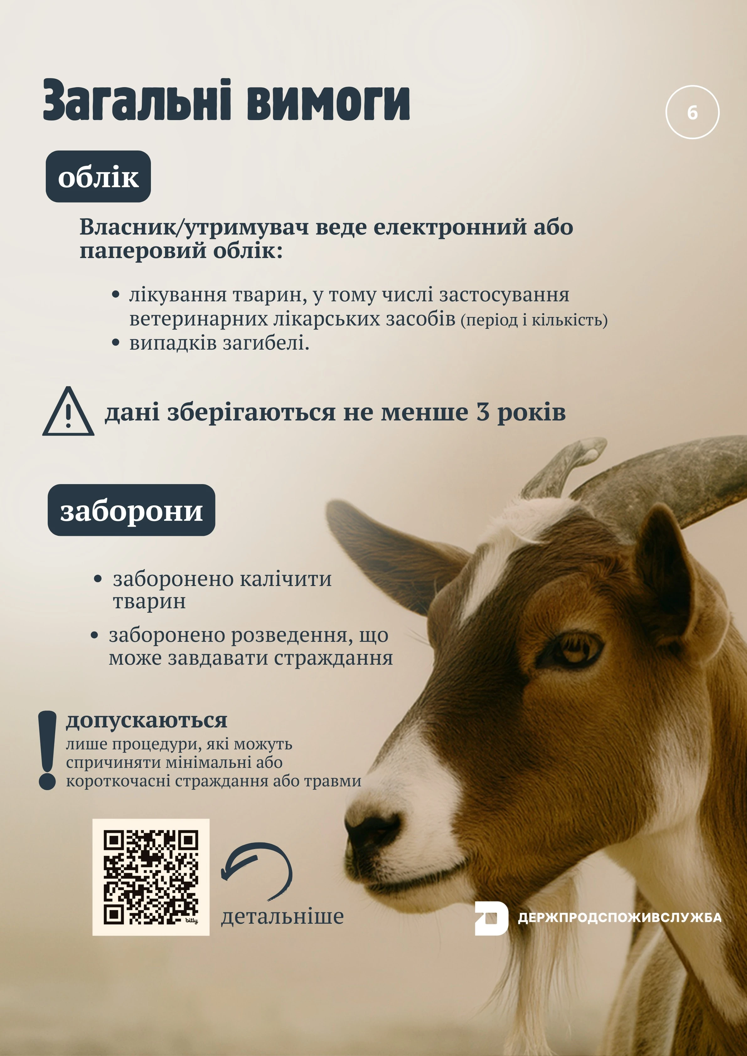 Вже з 1 січня 2026 року відповідно до наказу Мінекономіки від 08.02.2021 № 224 «Про затвердження Вимог до благополуччя сільськогосподарських тварин під час їх утримання» будуть введенні в дію вимоги до благополуччя сільськогосподарських тварин під час утримання і будуть обов’язковими до виконання всіма операторами ринку. В свою чергу, вимоги щодо благополуччя тварин під час умертвіння та транспортування почнуть діяти з березня 2026 року.