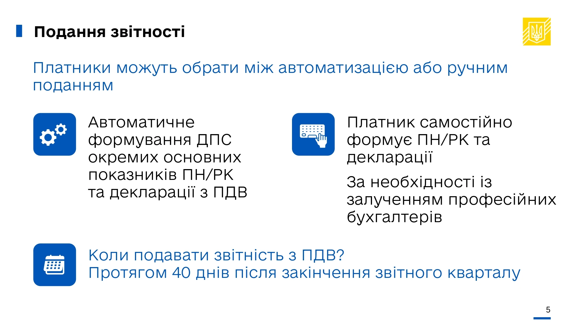 - держава зобов’язується максимально автоматизувати процеси, щоб знизити ризики пов’язані з впровадженням нових форм звітності для бізнесу.