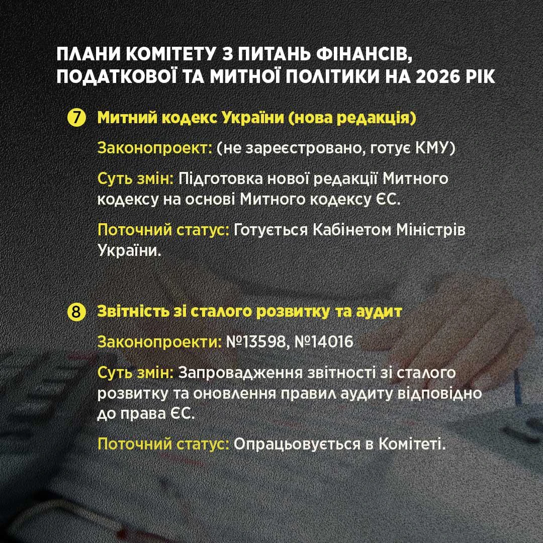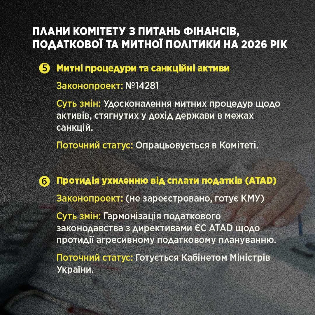 Отже, які законодавчі ініціативи будуть розглянуті та прийняті у 2026 році: