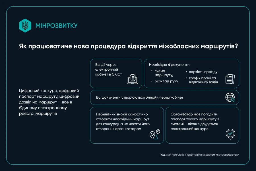 Вперше відкриття маршрутів відбуватиметься через Єдину комплексну інформаційну систему у сфері безпеки на наземному транспорті (ЄКІС) – для всіх організаторів перевезень. Доступ до електронного кабінету матимуть як організатори, так і перевізники.