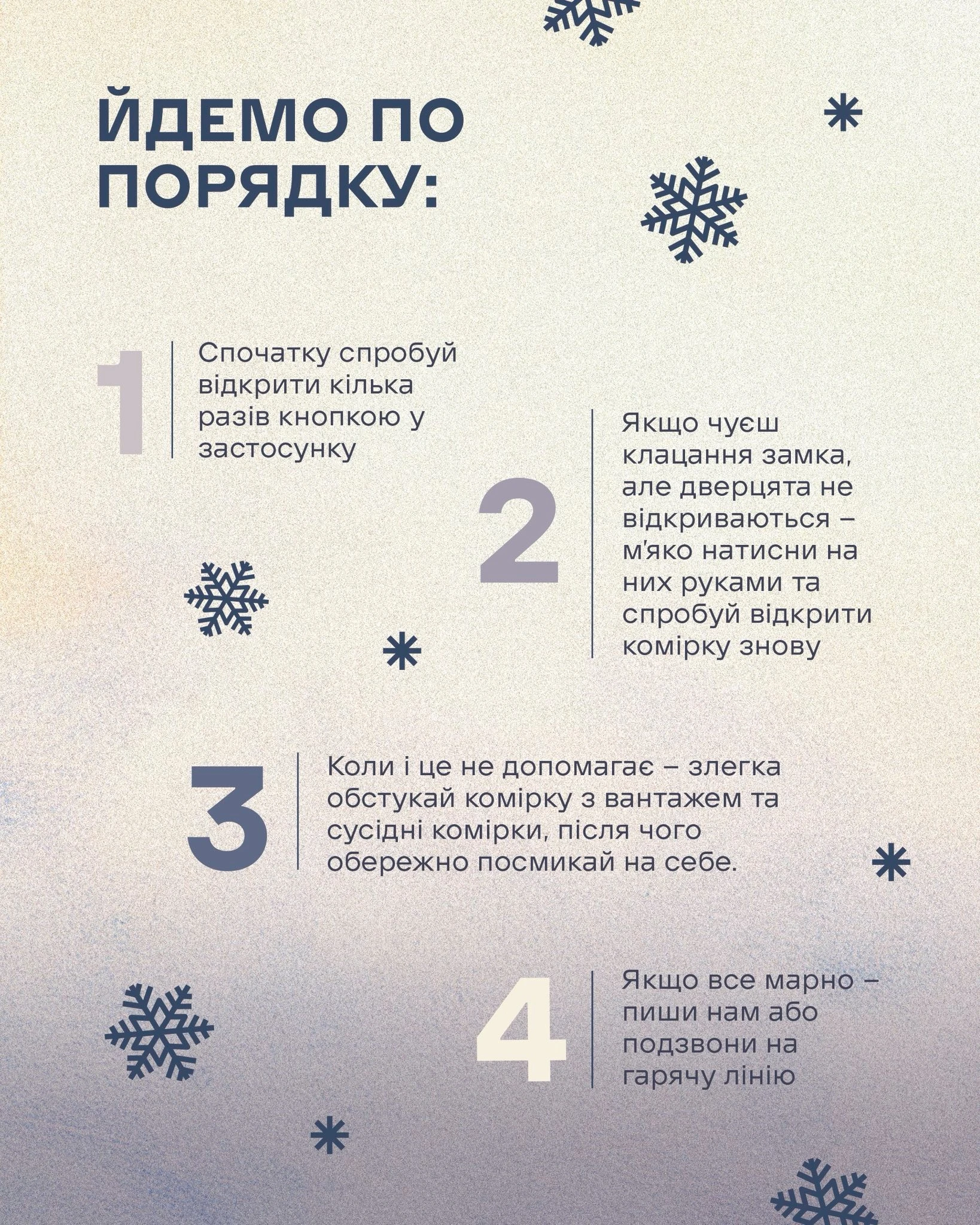 Фахівці підготували інфографіку як діяти, коли дверцята комірки з посилкою не відкрилися з першого разу