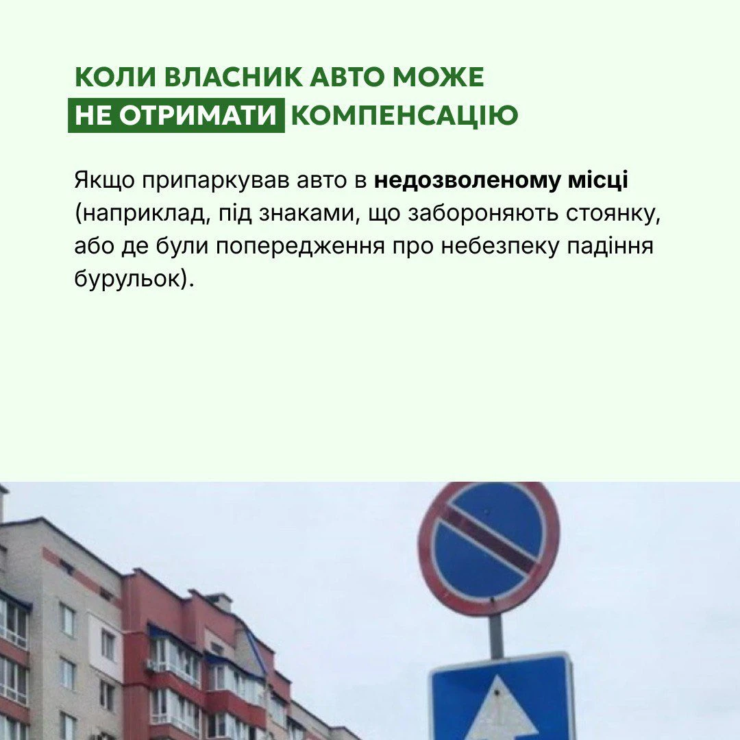 Що робити, якщо на припарковану автівку впала бурулька, дивіться у картках