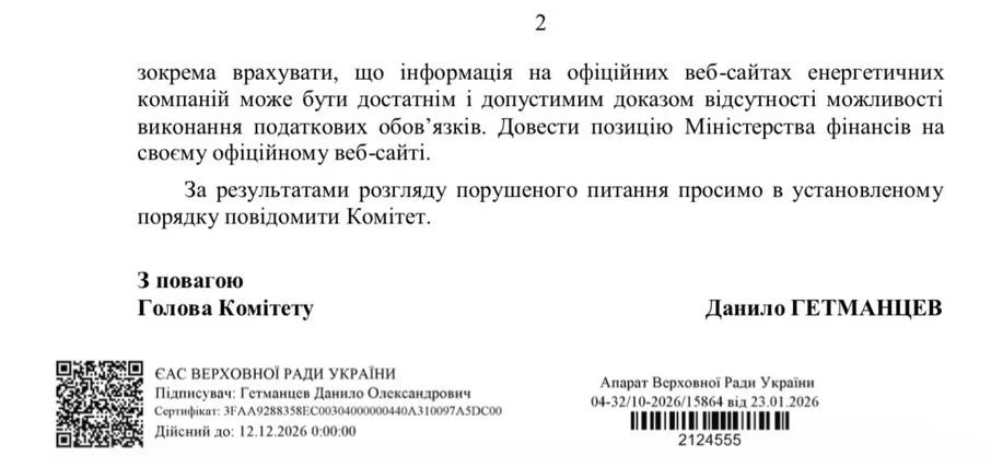 І бізнес просить, а Данило Гетманцев підтримує їх прохання, що достатнім і необхідним доказом є офіційне повідомлення про відключення на офіційних каналах енергогенеруючих компаній, замість подання низки документів.