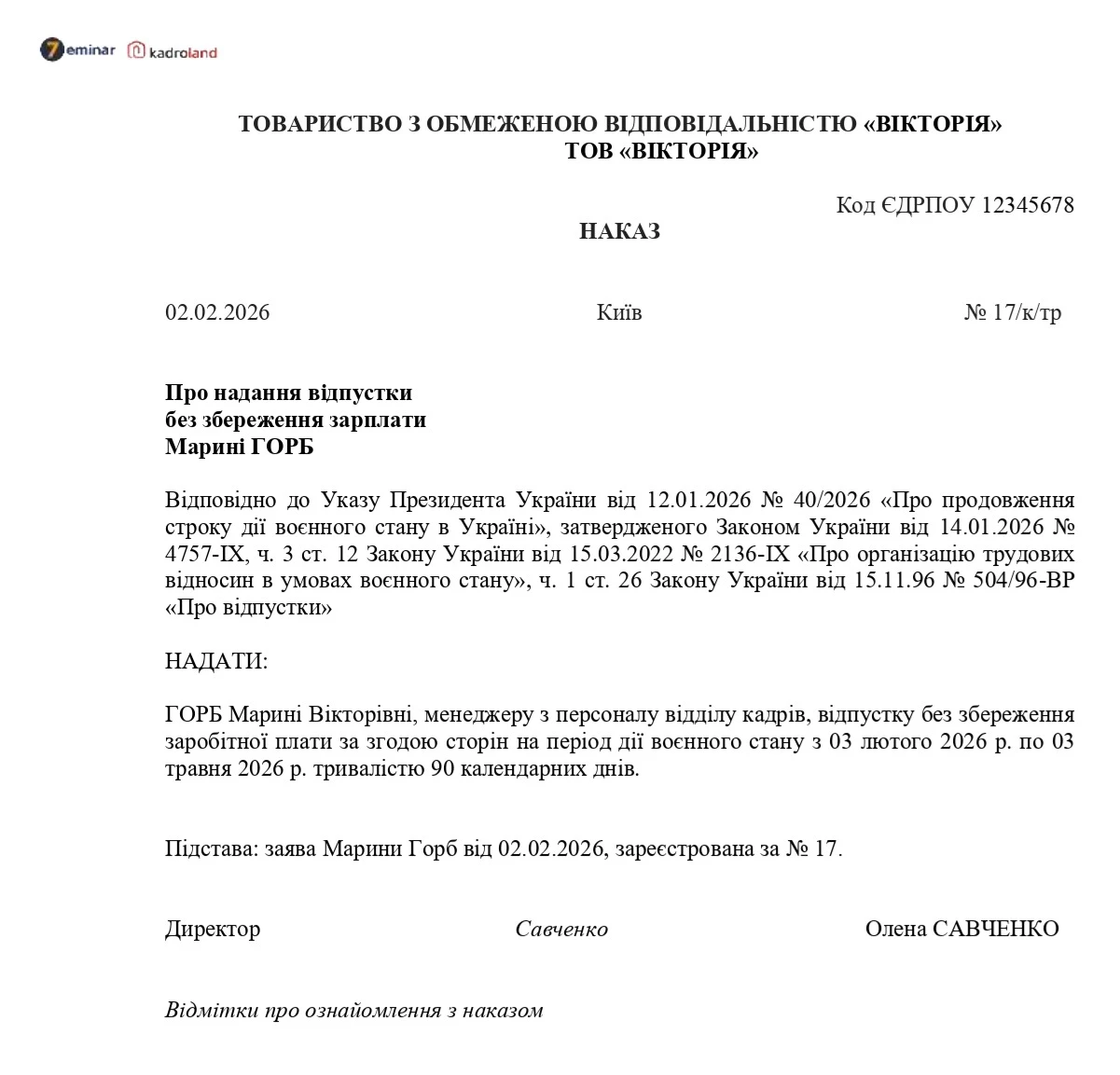 Відпустка без збереження зарплати під час воєнного стану: умови та тривалість