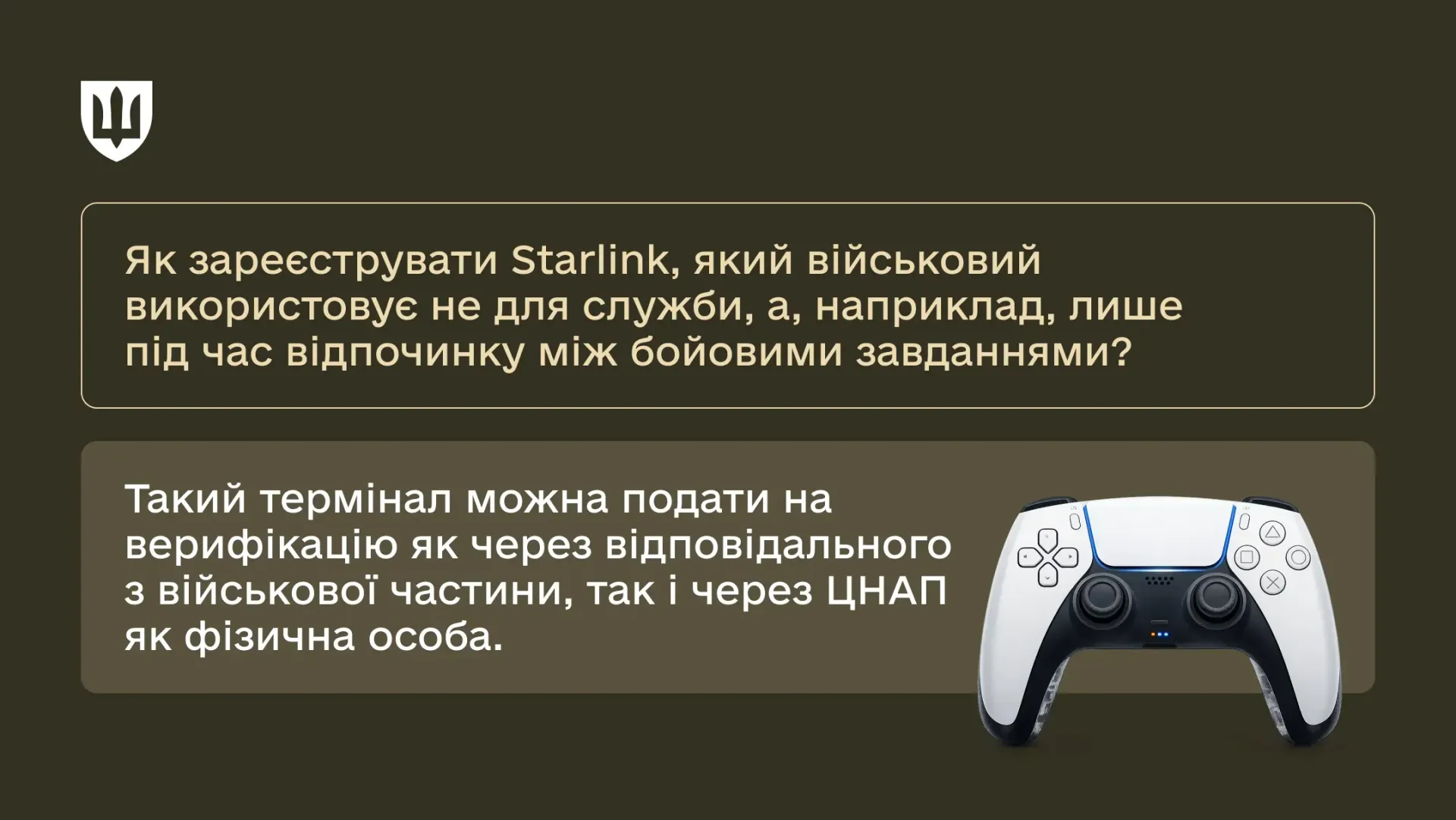 Постановка власних Starlink військовослужбовців, які подали їх у «білий список», на баланс частини не планується.