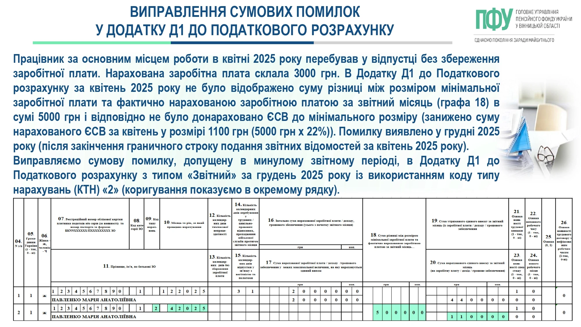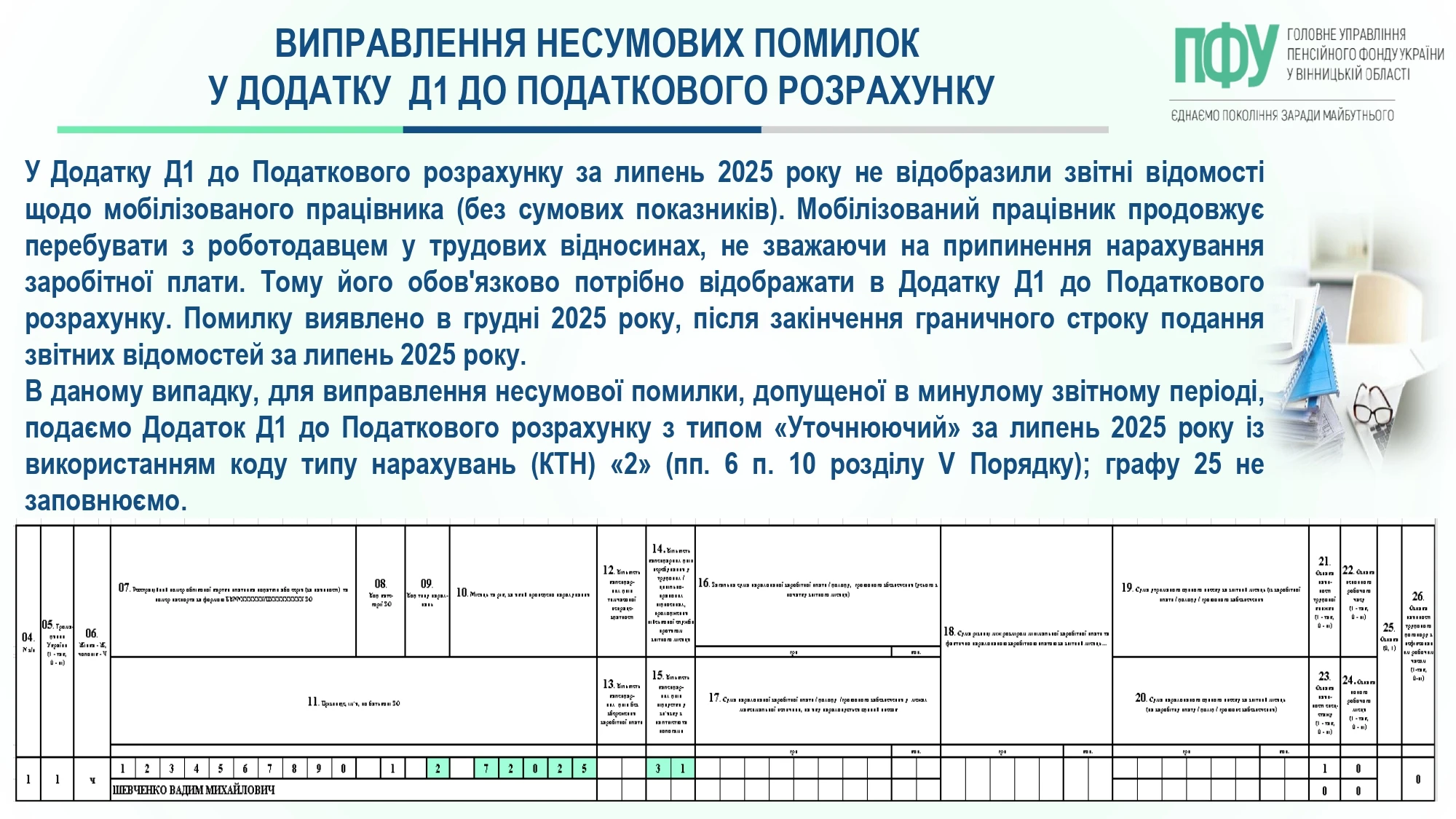 Виправлення несумових помилок у додатку Д1 до Податкового розрахунку
