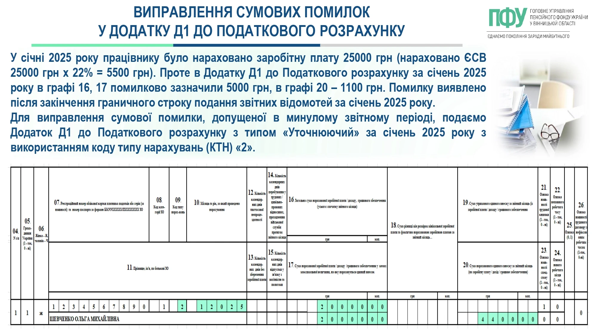 ПФУ наводить різні ситуації та як виправити помилку в додатку 1 Податкового розрахунку.