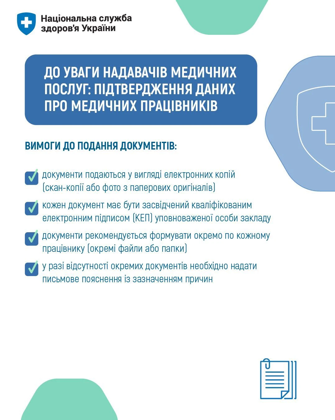- до 27 лютого 2026 року (включно) подати підтвердні документи щодо трудових відносин із зазначеними у листі медичними працівниками;