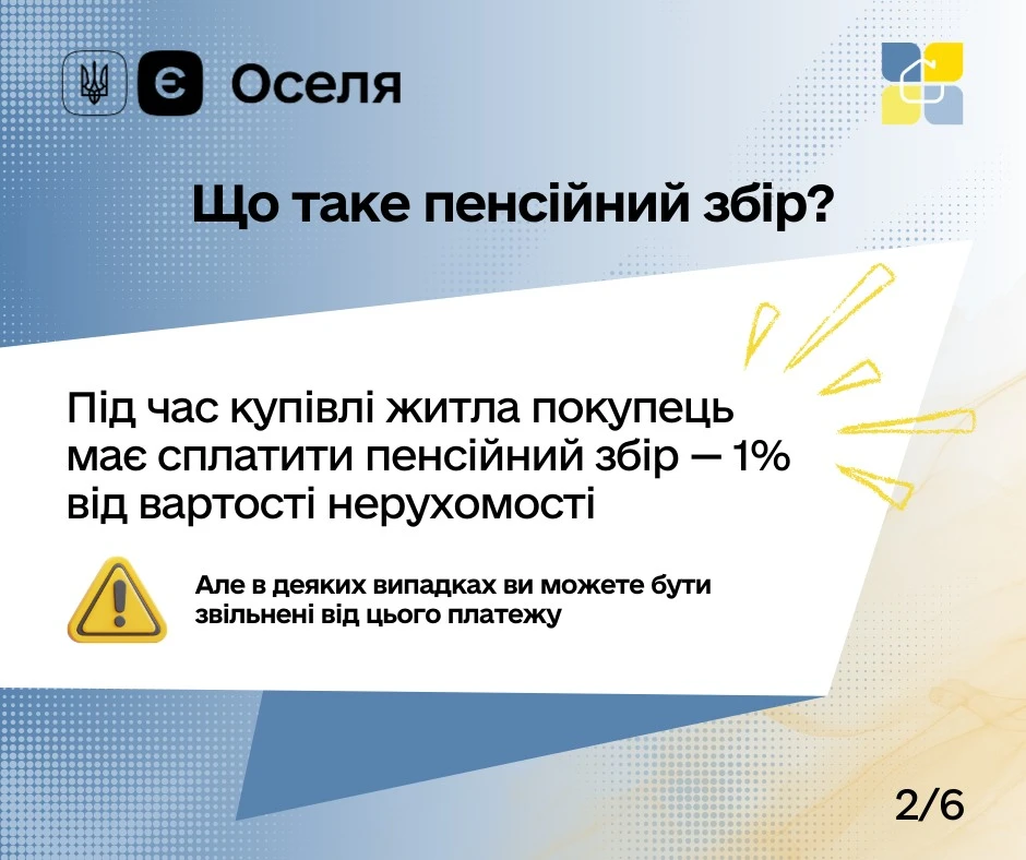 Для прикладу: якщо житло коштує 2 000 000 грн, пенсійний збір становитиме 20 000 грн.
