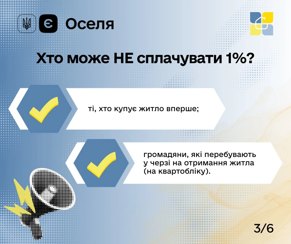 Якщо ви купуєте житло вперше, перебуваєте в житловій черзі або інвестуєте в будівництво – закон передбачає звільнення від цього збору.