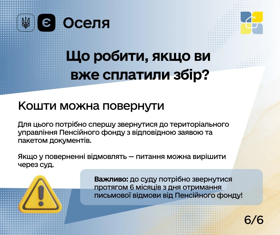 Якщо ж збір уже сплачено безпідставно – його можна повернути.