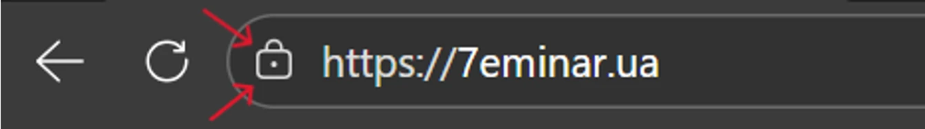 1️⃣ Знайдіть значок замка біля адреси сайту: