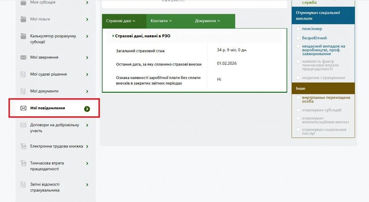 Крок 3. У меню ліворуч оберіть рубрику «Мої повідомлення».