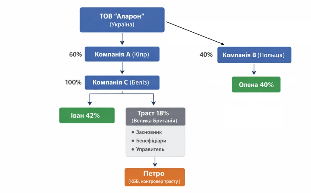 Наприклад, українське ТОВ належить трасту у Великій Британії. У трасті: