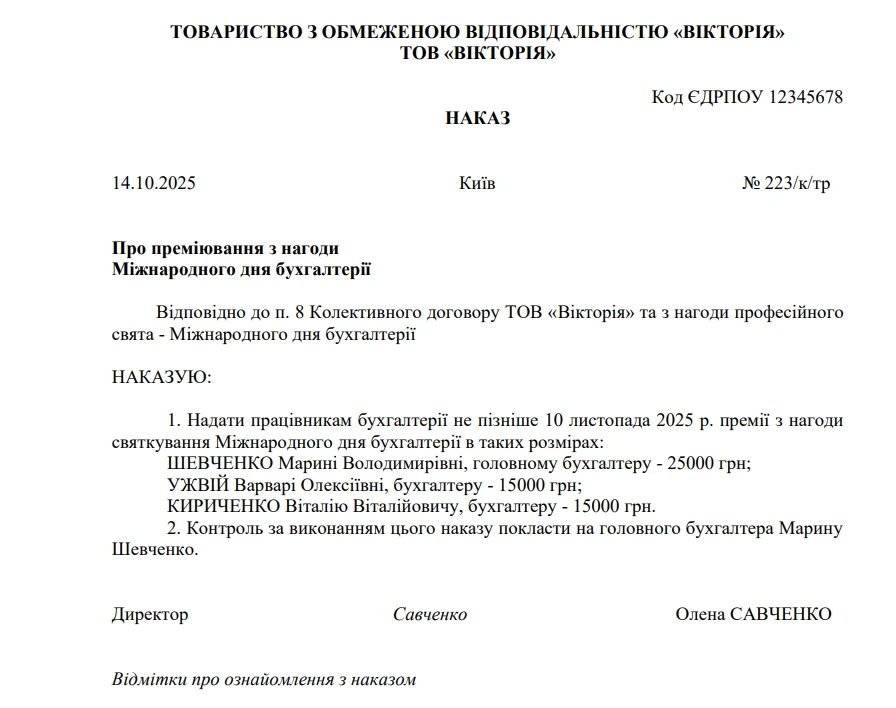 Залиште на столі директора записку з «формулою преміювання» бухгалтерів