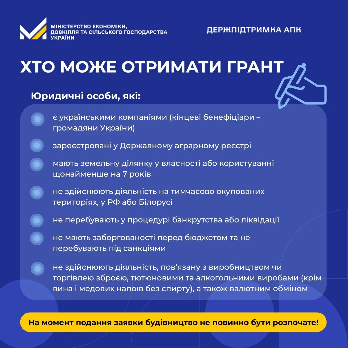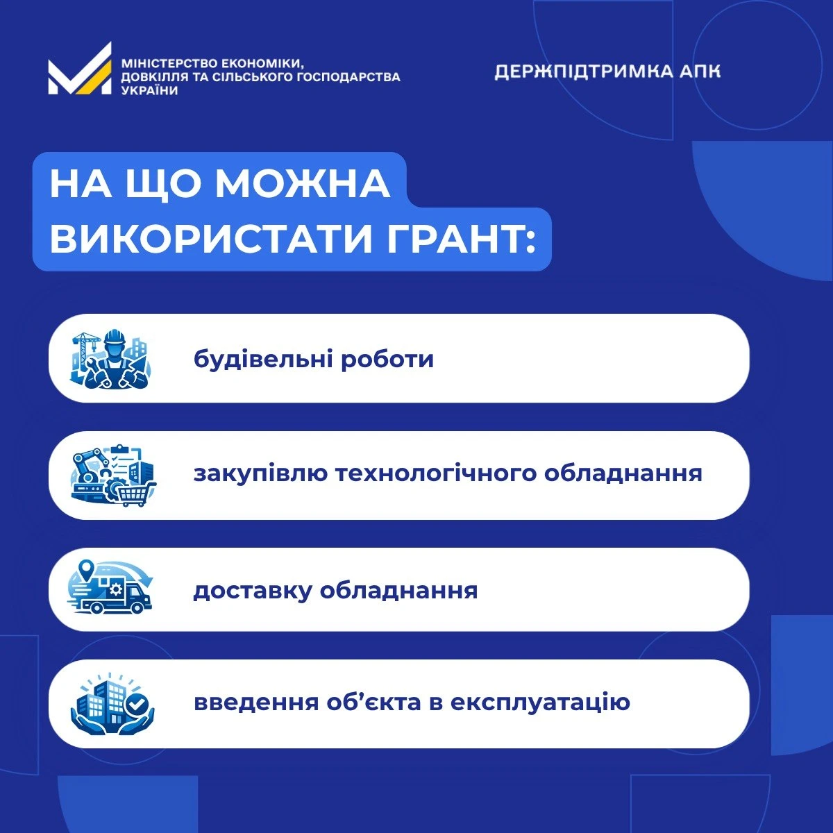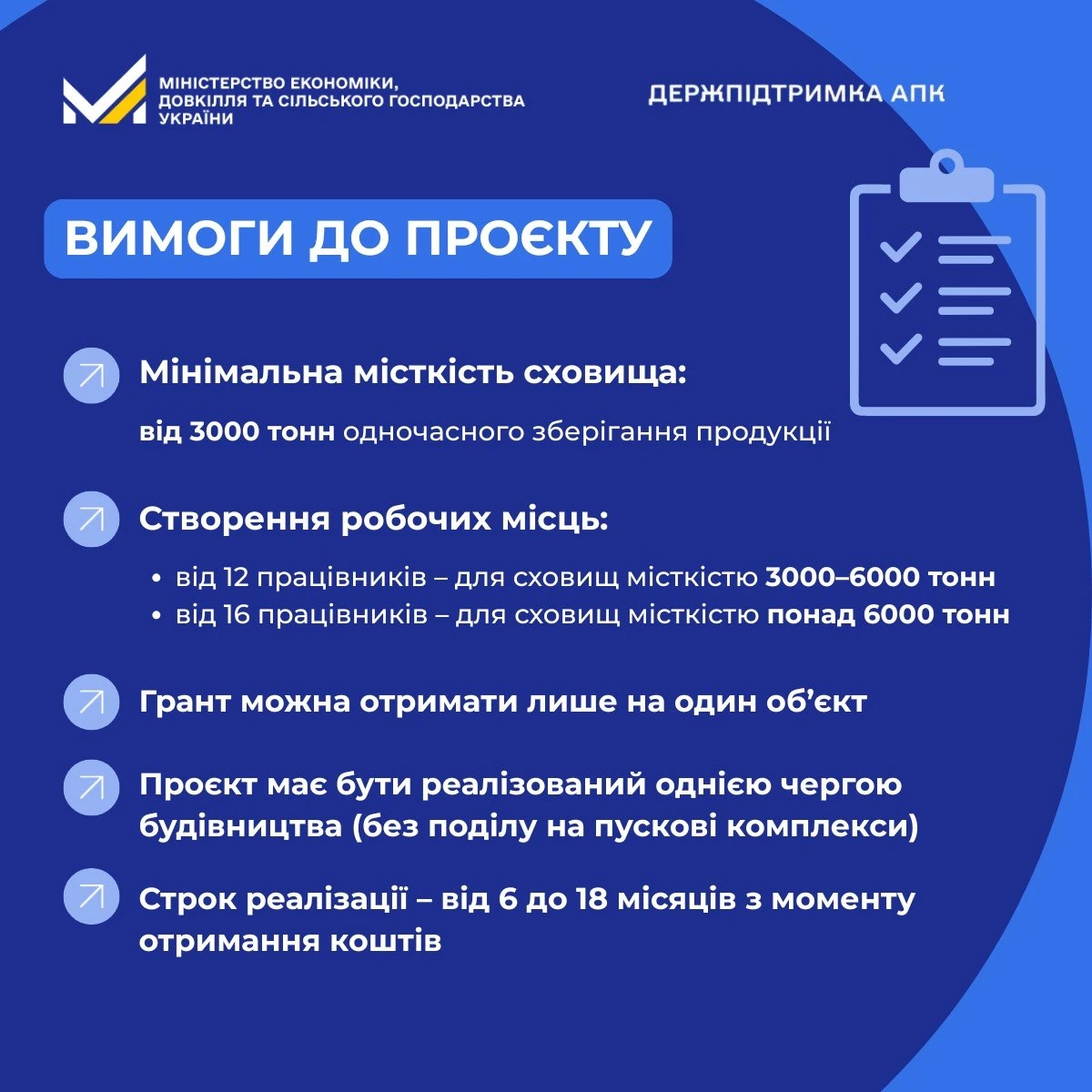 Гранти надаються на будівництво сховищ місткістю від 3 тис. тонн із зобов’язанням створити нові робочі місця.