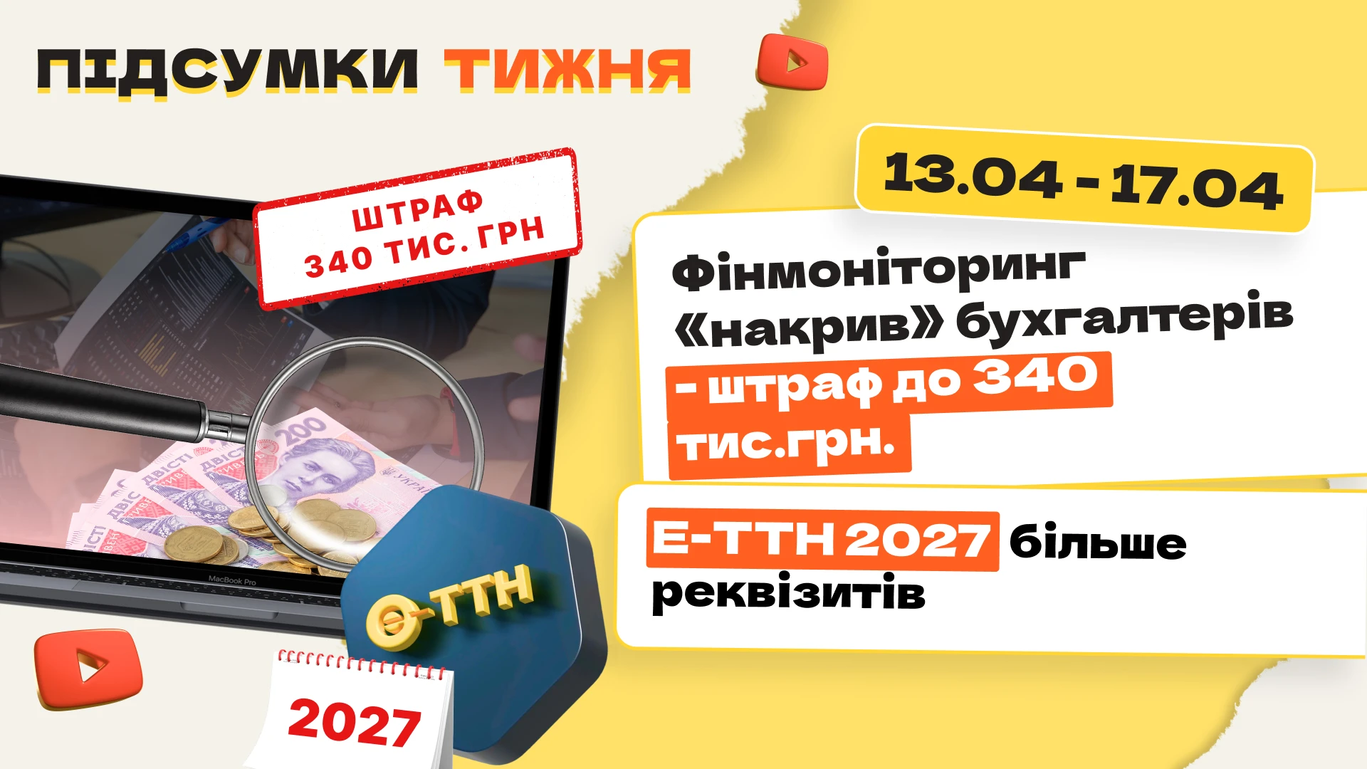 Фінмоніторинг «накрив» бухгалтерів – штраф до 340 тис.грн. Е-ТТН 2027 більше реквізитів. Підсумки тижня 13.04-17.04.2026