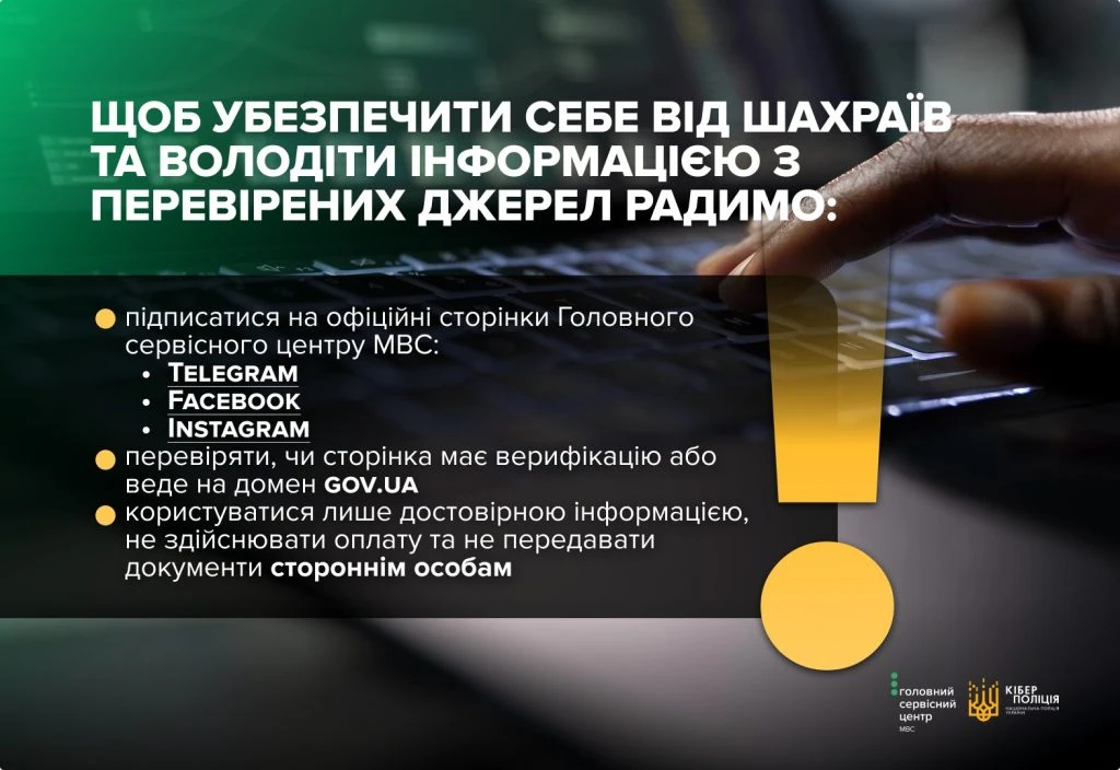 Головний сервісний центр МВС та Кіберполіція застерігають: