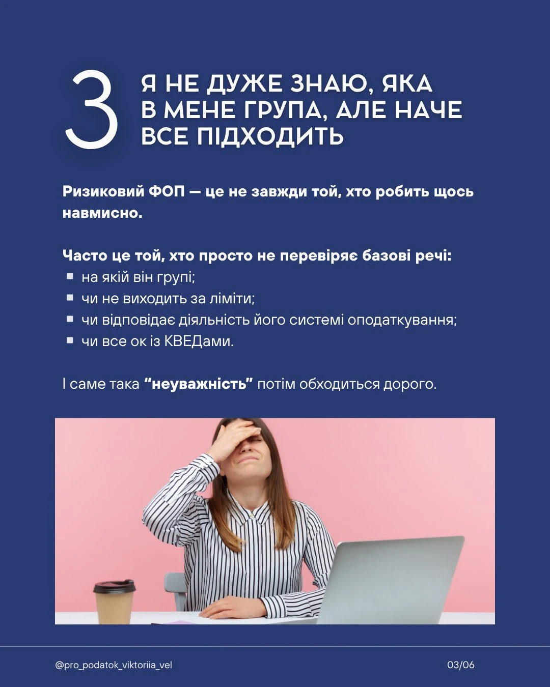 Вікторія Величко зібрала типові сигнали, які для бухгалтера одразу виглядають як зона ризику. Радимо підприємцям переглянути матеріал і перевірити себе на наявність таких моментів у власній діяльності.