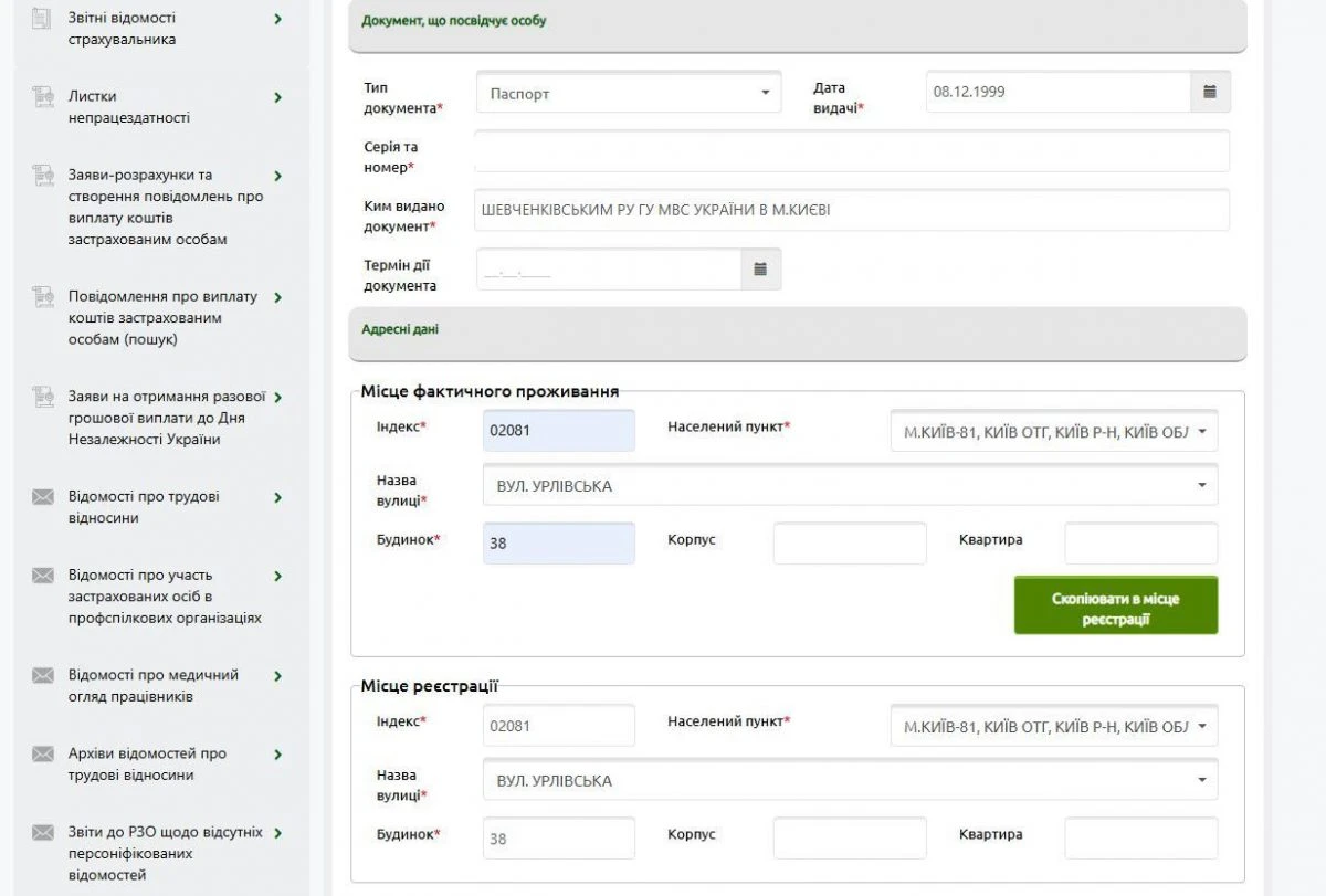 Крок 5. Вкажіть загальні дані про заявника, інформацію про документ, що посвідчує особу, дані місця реєстрації та проживання.