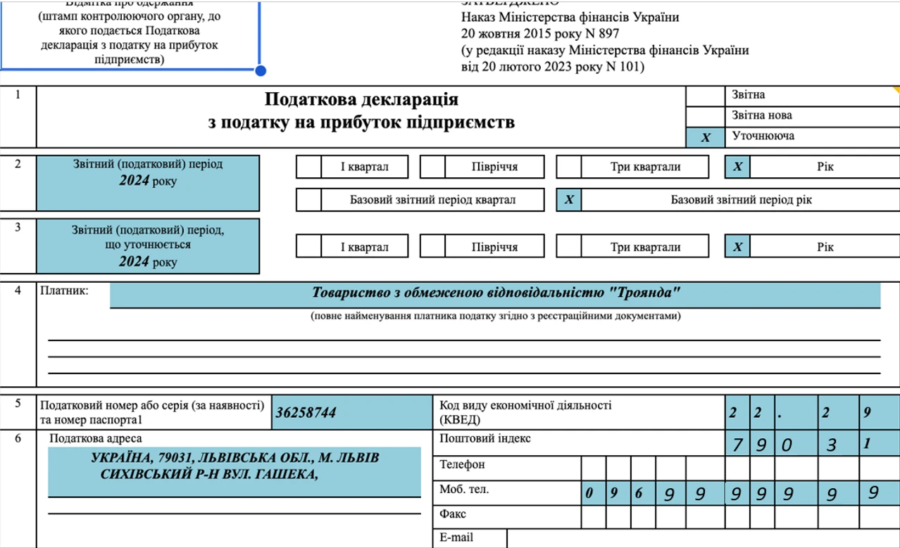 Уточнюючу Декларацію подають до того періоду, в якому помилка виникла вперше. Саме тому за нашим прикладом виправляємо 2024 рік. Але якщо б звітність була квартальною, тоді довелося б уточнювати послідовно всі періоди, куди «перекочувала» помилка: перший квартал, півріччя, 9 місяців, рік