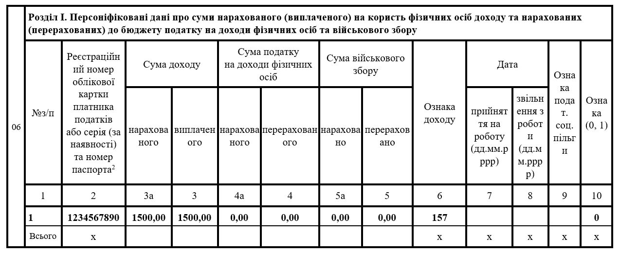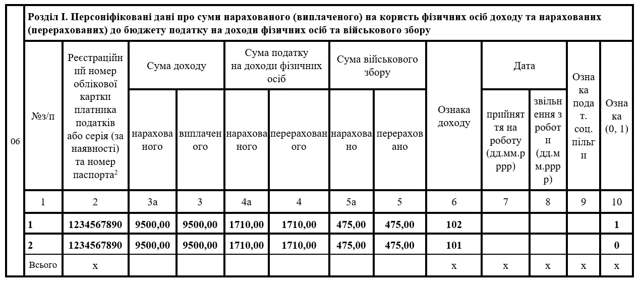 Рис. 7. Забули показати мобілізованого працівника без нарахованого доходу в додатку 1