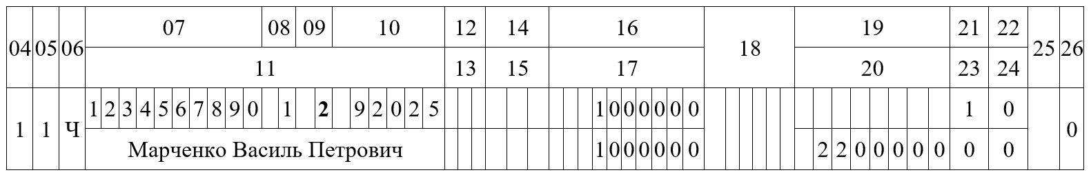 - графа 11 «прізвище», «ім’я», «по батькові» – відображаємо відповідно дані працівника;