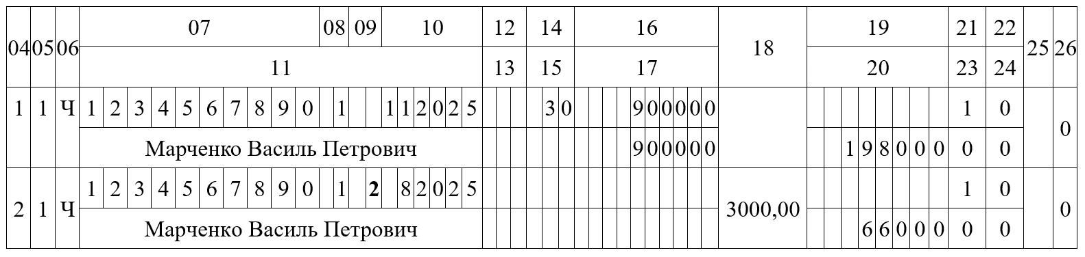 - графа 21 – відображаємо ознаку сумісництва, тобто «0»;