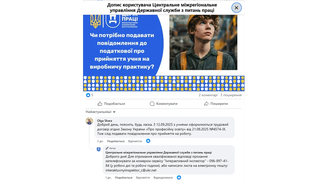 Ми звернулись що Держпраці щодо коректності даного роз'яснення і отримали відповідь, що варто зателефонувати за номером сервісу «Інтерактивний інспектор» – 096-897-41-84 (у робочі дні та робочі години), або написати листа на електронну пошту: interaktuvnyiinspektor_c@ukr.net
